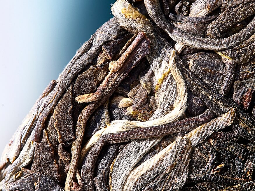 高山寨居於易武山頂峰,擁有易武茶區中保存最好,沒有被矮化過的古樹茶;因披覆了地衣而發白的樹幹挺拔壯碩,芽葉長達十餘公分,蘊含豐沛的能量將在往後漫漫的歲月中轉化、昇華。